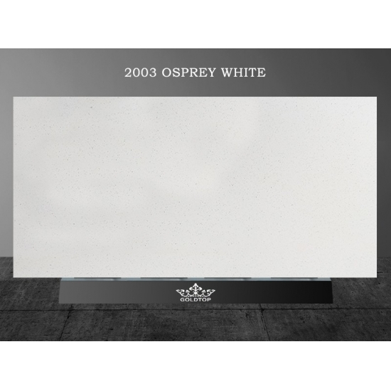 Le quartz blanc Osprey est une pierre de quartz artificielle spécialement traitée qui se distingue des autres séries par son aspect plus scintillant. Ce quartz apporte profondeur et texture aux murs, sols, plans de travail, etc. Il permet de créer de superbes revêtements muraux et crédences de vasque pour vos salles de bains et cuisines. Grâce à ses propriétés antibactériennes et à sa résistance à l'humidité, ce quartz est parfaitement adapté aux pièces humides.