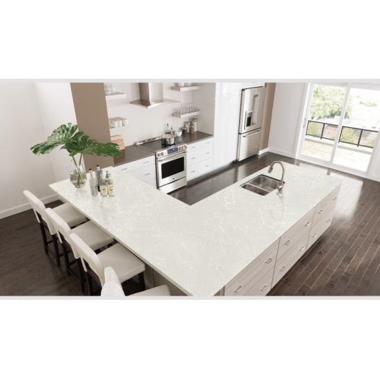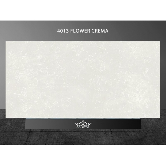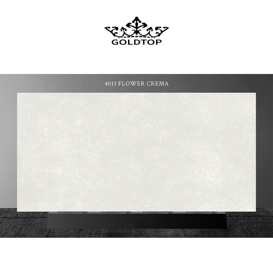 Dalle de quartz en marbre crème Flower 4013 Ce revêtement de sol en quartz présente une apparence chaleureuse et élégante, avec une base douce et crémeuse rehaussée de délicates veines naturelles évoquant le marbre. Sa surface dégage un charme raffiné et intemporel, les motifs délicats se déployant harmonieusement sur la dalle, créant une impression de mouvement et d'équilibre. Conçue pour apporter chaleur et sophistication à tout espace, cette dalle de quartz est un choix idéal pour les intérieurs modernes comme classiques.