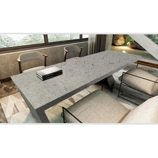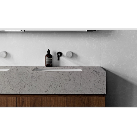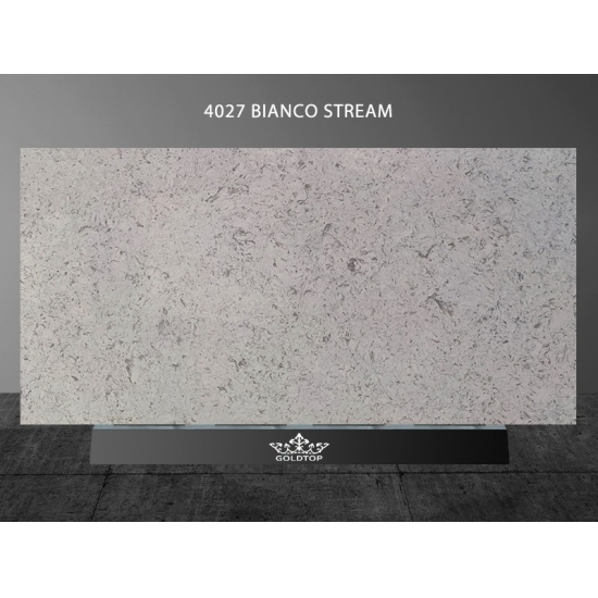 4027 Marbre Quartz Bianco Stream Ce quartz présente une apparence douce et élégante, avec un fond blanc éclatant rehaussé de fines veines grises. Sa surface dégage une sophistication sereine, les veines subtiles apportant mouvement et profondeur naturels sans surcharger l'espace. Conçu pour créer une ambiance raffinée et intemporelle, ce quartz insuffle une touche de fraîcheur et de légèreté aux cuisines, salles de bains et autres espaces intérieurs.