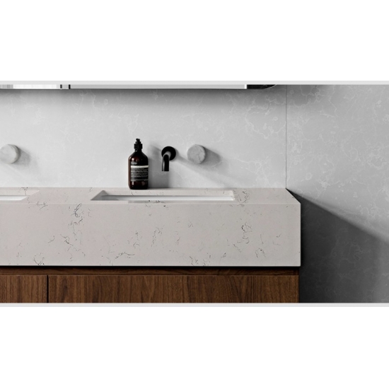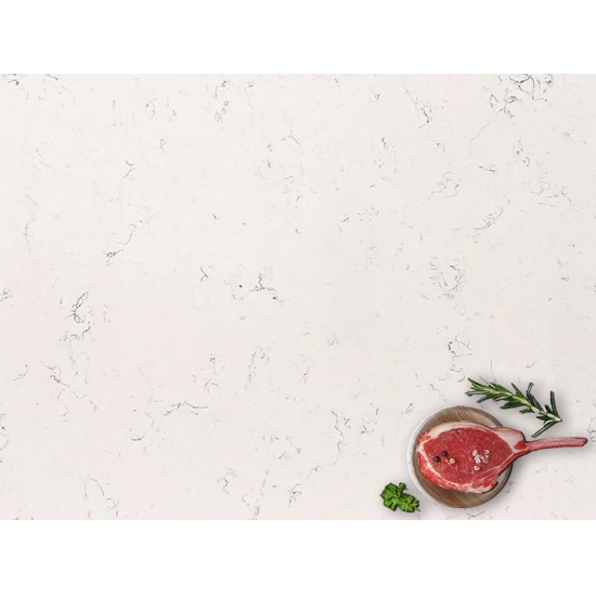 4029 Quartz marbré Winky Ce matériau présente une apparence élégante et raffinée, avec une base blanche douce délicatement veinée de subtiles stries grises et beiges. Sa surface dégage une beauté naturelle et intemporelle, les veines délicates créant une impression de fluidité et de sophistication. Cette dalle de quartz est conçue pour sublimer tout espace d'un luxe discret, apportant une touche de sérénité et de grâce aux plans de travail, aux murs ou aux aménagements décoratifs.