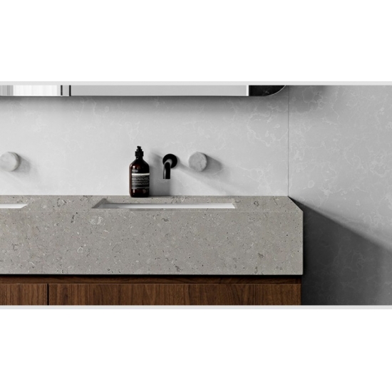 4042 Quartz en marbre gris Pietra Ce quartz présente une apparence raffinée et élégante, avec son fond gris profond rehaussé de veinures subtiles et délicates. Sa surface dégage un caractère à la fois moderne et intemporel, les douces nuances de gris créant un effet visuel apaisant et équilibré, d'une profondeur naturelle. Conçu pour apporter une touche de luxe discret, ce quartz est le choix idéal pour les cuisines contemporaines, les salles de bains et les intérieurs sophistiqués.