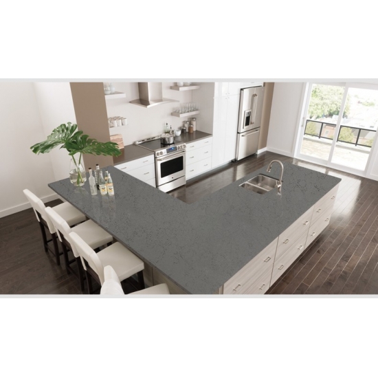 4045 Quartz Marbre Lagon Ce quartz présente une apparence élégante et rafraîchissante, inspirée par la beauté naturelle du marbre. Son fond blanc doux est rehaussé de veines grises fluides qui créent un effet visuel à la fois apaisant et dynamique. La surface, raffinée et équilibrée, offre de subtils contrastes qui ajoutent de la profondeur sans surcharger le design. Ce quartz apporte une sensation de sérénité et une élégance intemporelle, ce qui en fait un excellent choix pour les cuisines, les salles de bains et les intérieurs sophistiqués.