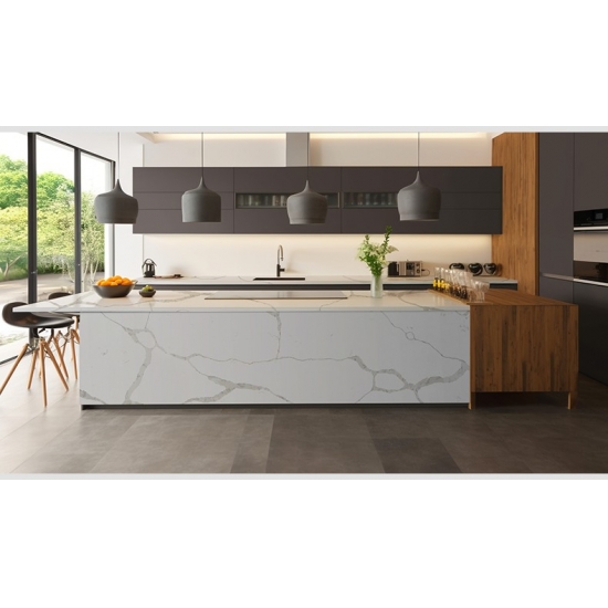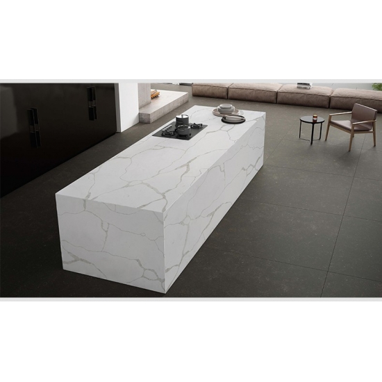 La dalle de quartz Silk Road 5003 présente une toile d'un blanc chaud et serein, gracieusement parcourue de délicates veines grises et taupe. Ce veinage subtil et organique évoque une élégance tranquille et un raffinement intemporel. Parfaite pour les intérieurs contemporains comme traditionnels, elle apporte une touche de calme luxueux à tout espace.
