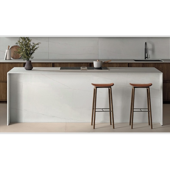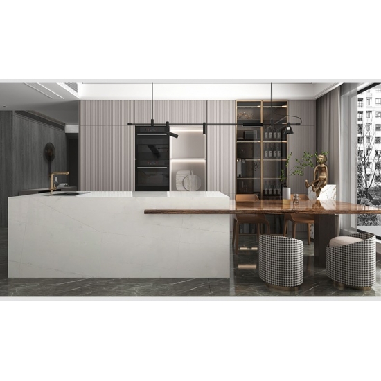 Le quartz Calacatta Emerald 5006 présente un fond blanc éclatant veiné d'un vert émeraude profond. Ce contraste saisissant crée une profondeur visuelle captivante et une énergie dynamique. Cette dalle incarne une modernité luxueuse, affirmant sa présence dans tout intérieur contemporain et insufflant à l'espace une sophistication vibrante.