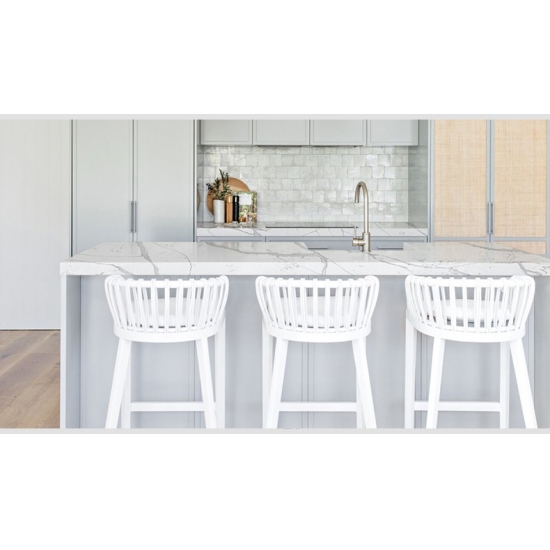 Le quartz Volakas White Calacatta 5044 se prête à de nombreuses applications grâce à son élégance intemporelle et à son design polyvalent. Ce quartz poli est couramment utilisé pour les plans de travail de cuisine, les vasques de salle de bain et les crédences, où sa surface blanche immaculée, légèrement veinée de gris, apporte une touche de raffinement. Il est également idéal pour les revêtements muraux et les sols, aussi bien dans les espaces résidentiels que commerciaux.