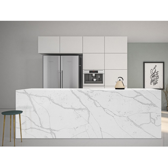 Fournisseur de dalles de quartz blanc Calacatta Fendy 5066
