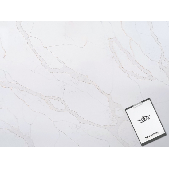 GOLDTOP 5033 Quartz Calacatta Blanc Vague Océane Veines Gris Blanc