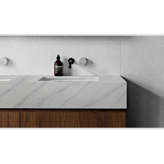 La dalle de quartz Volakas 5044 présente un fond blanc pur et lumineux, sublimé par de délicates veines grises. Ses motifs subtils et fluides créent une impression d'élégance sereine et un charme intemporel. Cette dalle offre un parfait équilibre entre beauté classique et durabilité moderne, apportant avec élégance et raffinement à tout intérieur.