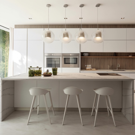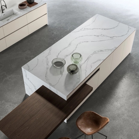 5128 Dalles de quartz blanc Fior Bosco pour plans de travail de cuisine