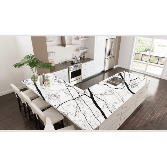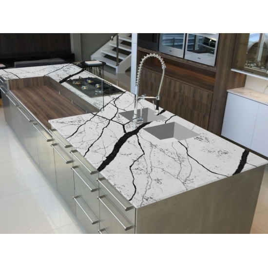 5070 San Louis White Calacatta Quartz With Thick Black Stripes 5070 San Louis White Calacatta Quartz With Thick Black Stripes