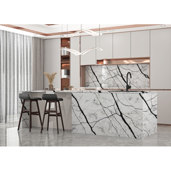 5128 Dalles de quartz blanc Fior Bosco pour plans de travail de cuisine
