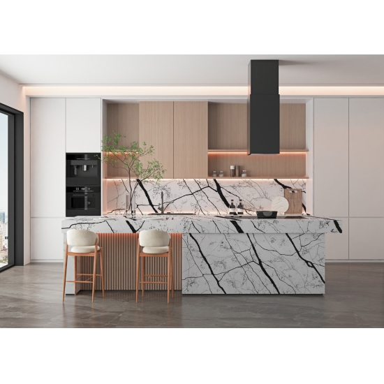 Ce quartz est idéal pour de nombreuses applications, des plans de travail et îlots de cuisine aux murs décoratifs et vasques. Son veinage marqué lui confère caractère et raffinement, en faisant un élément central de tout décor. Associé à des finitions métalliques élégantes ou à des tons boisés chaleureux, le quartz Calacatta Fiorina 5125 sublime l'élégance de tout espace.