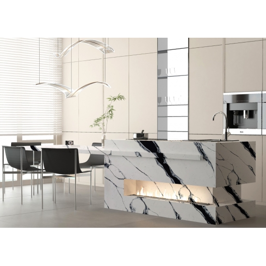 Ce quartz est idéal pour de nombreuses applications, des plans de travail et îlots de cuisine aux murs décoratifs et vasques. Son veinage marqué lui confère caractère et raffinement, en faisant un élément central de tout décor. Associé à des finitions métalliques élégantes ou à des tons boisés chaleureux, le quartz Calacatta Fiorina 5125 sublime l'élégance de tout espace.