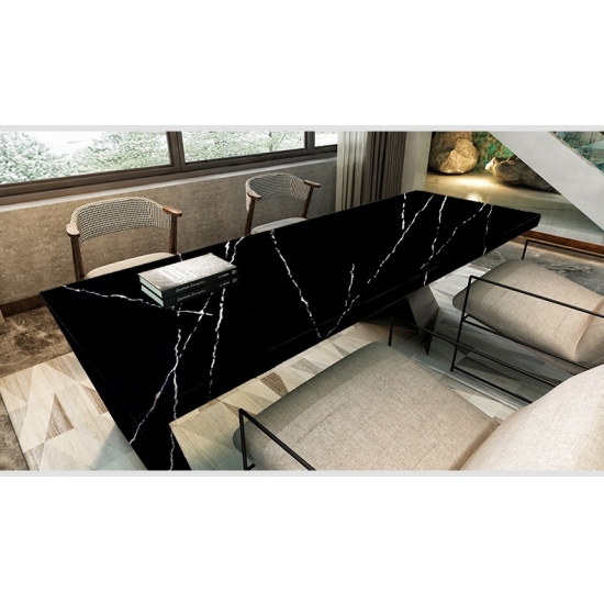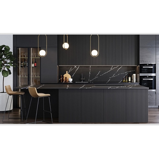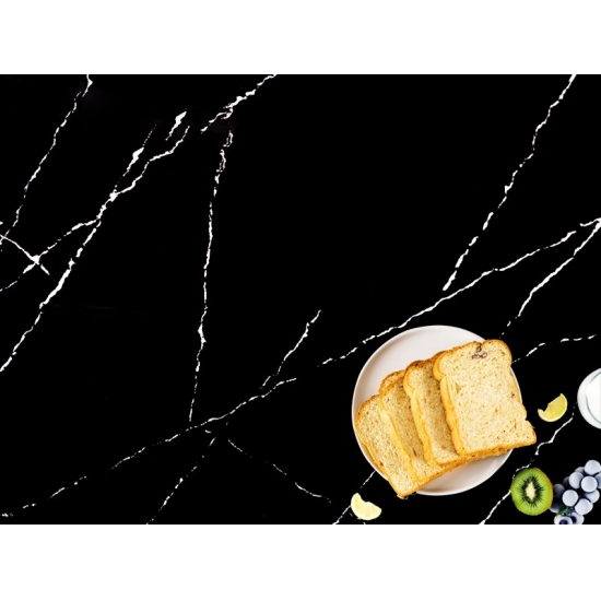 La dalle de quartz 5074 Black Artwork présente un fond noir profond rehaussé de veinures blanches saisissantes. Ce motif à fort contraste crée un impact visuel dynamique et artistique. Elle incarne le luxe moderne et affirme avec force le style de tout intérieur contemporain.