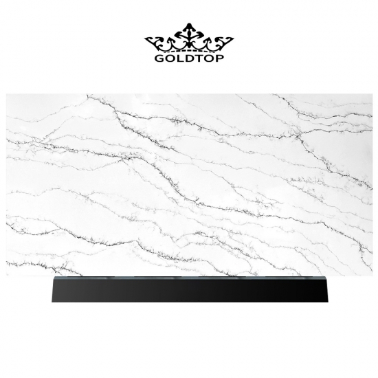 Quartz milanais statuaire 5096, vente en gros personnalisée. Le quartz milanais statuaire possède un motif de texture très exquis. La base blanche présente des textures gris foncé et gris clair, ce qui lui confère un aspect très agréable et attirera certainement votre attention. Résistant à la corrosion et aux hautes températures, facile à nettoyer, il est devenu la tendance en matière de design décoratif !