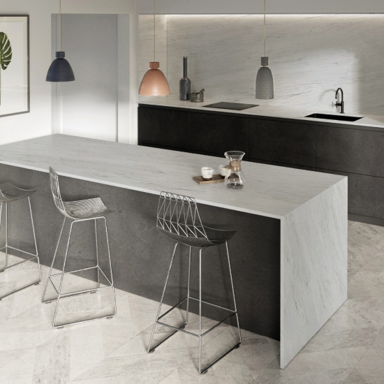 Le quartz Caesar 4051 Organic White Zero Silicon présente une surface d'un blanc pur et une composition écologique sans silicone, garantissant une utilisation sûre et non toxique. Ses atouts incluent une grande durabilité, un entretien facile et une esthétique minimaliste et moderne, ce qui en fait un matériau idéal pour les plans de travail de cuisine et de salle de bain dans les maisons soucieuses de leur santé.