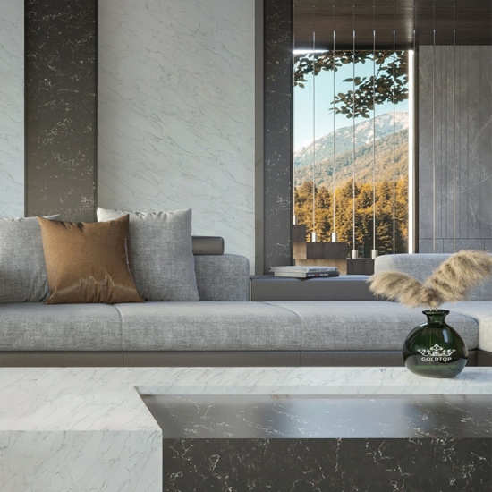 GOLDTOP Stone, fournisseur leader de pierre de quartz, propose plus de 100 coloris standards et des coloris spéciaux personnalisables. Notre pierre de quartz est exportée vers plus de 20 pays, dont les États-Unis, le Canada, l'Australie, le Royaume-Uni et l'Allemagne. GOLDTOP Stone est aujourd'hui reconnu comme l'un des meilleurs fournisseurs de pierre de quartz en provenance de Chine. GOLDTOP QUARTZ est certifié par SGS, IAF, CE et NSF comme un produit sûr pour le contact alimentaire direct. Notre système de contrôle qualité rigoureux garantit la conformité de chaque dalle livrée à nos clients. Nous sommes impatients d'établir des relations commerciales professionnelles et durables avec des clients du monde entier. Bienvenue chez GOLDTOP QUARTZ.