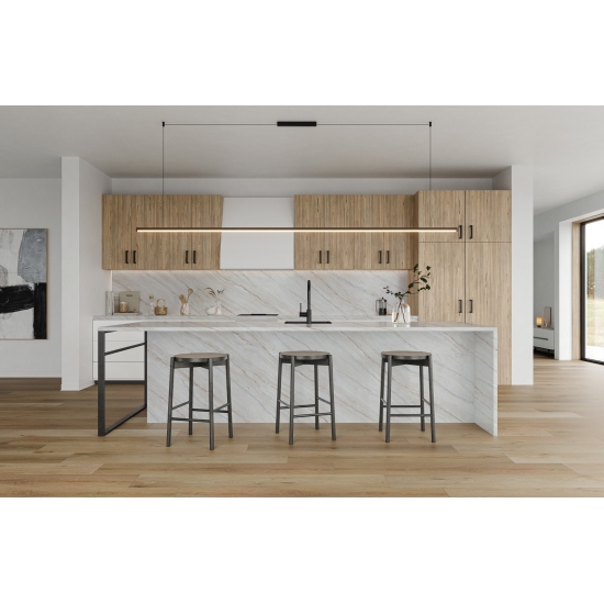 Le quartz Calacatta est actuellement le produit en pierre de quartz le plus populaire. Raffiné et unique, le quartz Calacatta séduit par sa blancheur éclatante et son veinage traversant imitant à la perfection le marbre. Avec son magnifique veinage large et sa texture luxueuse, ce quartz offre l'aspect naturel du marbre Calacatta, sans ses inconvénients. Très résistant aux taches et aux rayures, le quartz Calacatta est un choix idéal pour les plans de travail de cuisine et de salle de bain, les escaliers, les appuis de fenêtre, le mobilier sur mesure, les revêtements muraux et de sol intérieurs et extérieurs, les motifs découpés au jet d'eau et autres projets de design.
