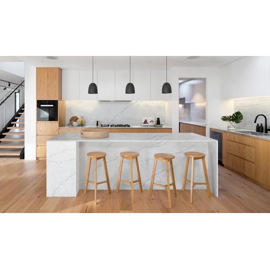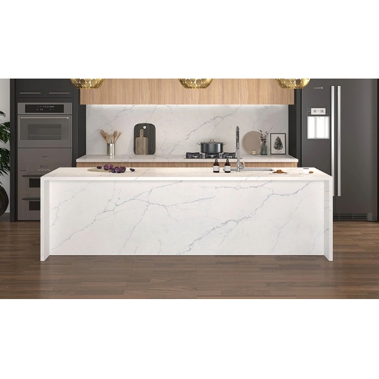 Calacatta Milas Quartz est un chef-d'œuvre d'élégance technique, capturant l'essence du marbre naturel le plus précieux. Il présente une toile blanche chaleureuse et accueillante, gracieusement parcourue de délicates veines grises. Cette composition luxueuse offre le caractère intemporel et la beauté sophistiquée du marbre, idéale pour créer un point focal dans tout intérieur. Disponible pour les plans de travail, les crédences et les murs d'accent, il apporte une harmonieuse fusion d'inspiration classique et de luxe contemporain aux cuisines, salles de bains et autres pièces.