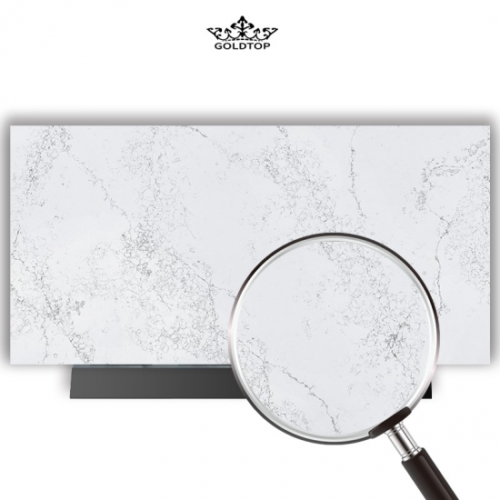 Le quartz blanc ciment à texture flocon de neige est un matériau de pierre artificielle spécialement traité. Son aspect, proche d'une finition mate, lui confère une couleur légèrement différente de celle d'une finition polie classique. Cette finition est également qualifiée de « brossée » pour le granit.