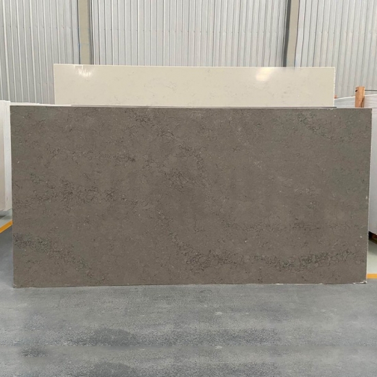 6002 GRIS CIMENT BÉTON QUARTZ Le quartz béton est une pierre artificielle en quartz ayant subi un traitement spécifique. Proche d'une finition mate, la finition béton modifie légèrement la couleur du quartz par rapport à une finition polie classique. Cette finition est également appelée « brossée » pour le granit.