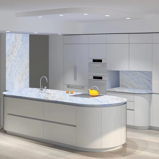 50 Square MetersSublimez votre cuisine avec les superbes plans de travail en quartz blanc veiné de bleu et d'or de Lazada. Fabriqués avec précision et soin, ces plans de travail présentent un mélange unique de veines bleues et dorées. Ces magnifiques dalles de quartz bleu offrent un style luxueux et moderne. Parfaits pour les cuisines et les salles de bains, ces plans de travail sont conçus pour résister à l'usure quotidienne tout en conservant leur beauté et leur durabilité. Améliorez votre espace avec les plans de travail en quartz blanc veiné de bleu et d'or de Lazada et découvrez un nouveau niveau d'élégance et de raffinement.