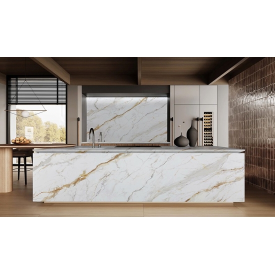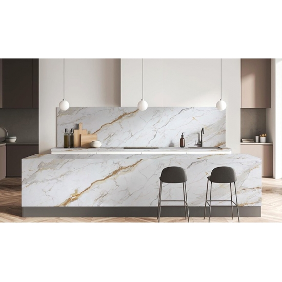 Découvrez le luxe intemporel avec notre Dalle de porcelaine Calacatta Gold 7001 Cette dalle d'exception capture avec maestria l'essence du marbre Calacatta naturel, offrant un fond blanc lumineux élégamment veiné de subtiles touches dorées et grises. Son format généreux et sa durabilité exceptionnelle créent un effet luxueux et harmonieux pour les plans de travail, les murs et les sols, transformant tout espace en un chef-d'œuvre d'élégance raffinée.