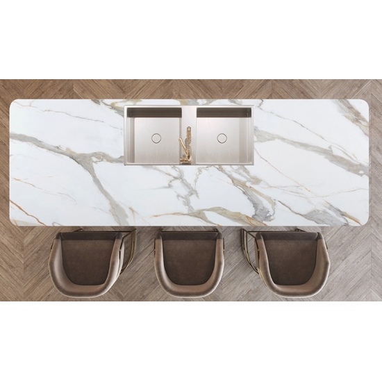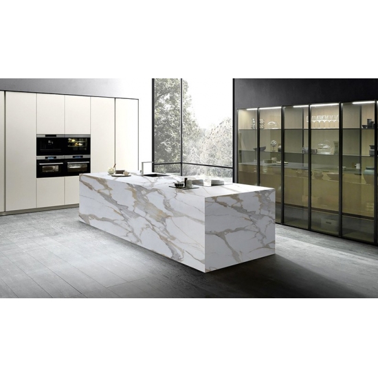 Le quartz PD Calacatta Macchia Vecchia 7005 présente une toile blanche spectaculaire, rehaussée de veines gris anthracite audacieuses, créant un contraste saisissant. Ses motifs dynamiques et complexes produisent un impact visuel puissant et artistique. Cette dalle incarne le luxe et la grandeur moderne, idéale pour créer un point focal dans les intérieurs raffinés.