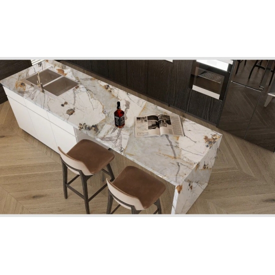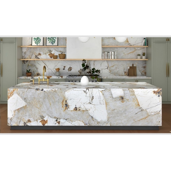Découvrez une liberté de création sans limites avec la dalle de quartz imprimée Pandora. Grâce à un veinage profond et régulier obtenu par impression 3D, les découpes et les arêtes sont parfaitement nettes. L'esthétique naturelle du marbre se déploie ainsi harmonieusement sur toutes les surfaces, offrant des possibilités d'application plus créatives et rentables, tant pour les projets résidentiels que commerciaux.