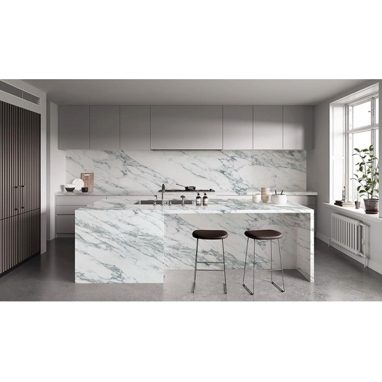 Arabescato Verde Quartz est une surface d'une conception magistrale qui réinterprète la grandeur intemporelle du marbre italien pour l'ère moderne. Elle présente une toile blanche immaculée, animée avec intensité par des veines expressives et sinueuses aux nuances de gris et de vert tendre. Ce mélange harmonieux crée un motif au flux naturel, offrant à la fois profondeur et une élégance sophistiquée. La palette fraîche et contemporaine des veines teintées de vert apporte une touche de modernité à l'esthétique classique du marbre, lui permettant de sublimer avec subtilité des espaces allant des sanctuaires minimalistes aux intérieurs opulents, sans les surcharger.