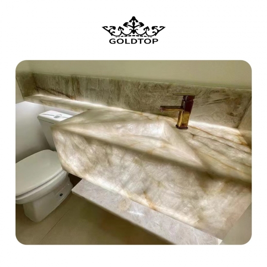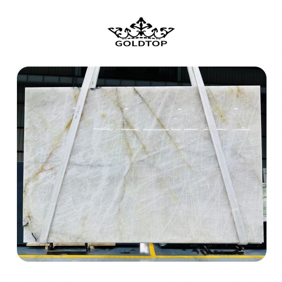Informations sur le produit · Nom : dalles d'onyx blanc  · Couleur : Blanc · Lieu d'origine : Chine · Épaisseur : 3/8 pouces, 3/4 pouces · Taille : 2800 x 1800 mm, 2800 x 1600 mm, etc. · Finitions disponibles : poli, aiguisé, flambé, cuir  · Application : hôtel, décoration intérieure