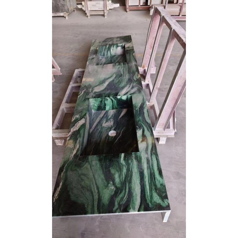 Les plans de travail en pierre de luxe Green Silk allient à la perfection élégance et durabilité. Leur teinte verte naturelle éclatante, rehaussée d'un veinage délicat et soyeux, apporte profondeur et sophistication à tout espace. Fabriqués en pierre de première qualité, ces plans de travail allient une esthétique luxueuse à une résistance et une longévité exceptionnelles, les rendant parfaits pour les cuisines, les salles de bains et les intérieurs haut de gamme. Leurs variations de couleurs uniques et leur finition lisse et polie créent un style intemporel qui sublime les intérieurs modernes comme classiques, transformant chaque surface en une expression de raffinement.