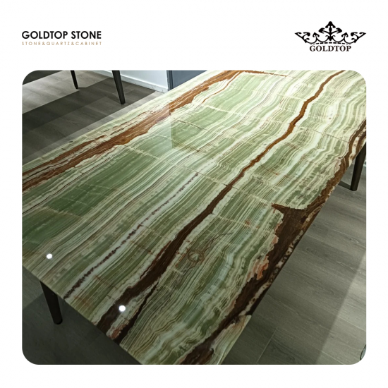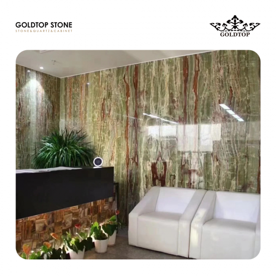 Polished,Honed,Flamed,LeatherOnyx d'Émeraude L'onyx vert translucide de qualité supérieure, provenant du Pakistan, présente un fond vert tendre veiné de façon distinctive, évoquant le bambou. Sa texture fine, sa surface lisse et ses excellentes propriétés de transmission de la lumière créent des effets visuels saisissants lorsqu'il est rétroéclairé, ce qui le rend idéal pour les aménagements intérieurs haut de gamme. Largement utilisé dans les villas de luxe, les murs d'accent, les plans de travail et les panneaux décoratifs, l'onyx vert sublime les espaces classiques et contemporains. Sa couleur unique et sa translucidité naturelle en font un choix privilégié pour les designers en quête de solutions en pierre élégantes, inspirées par la nature, à fort impact visuel et à forte valeur culturelle.